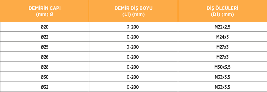 Proje taleplerinize uygun 20-32 mm arası tüm nervürlü inşaat demirlerine Bulon disi acabilmekteyiz.